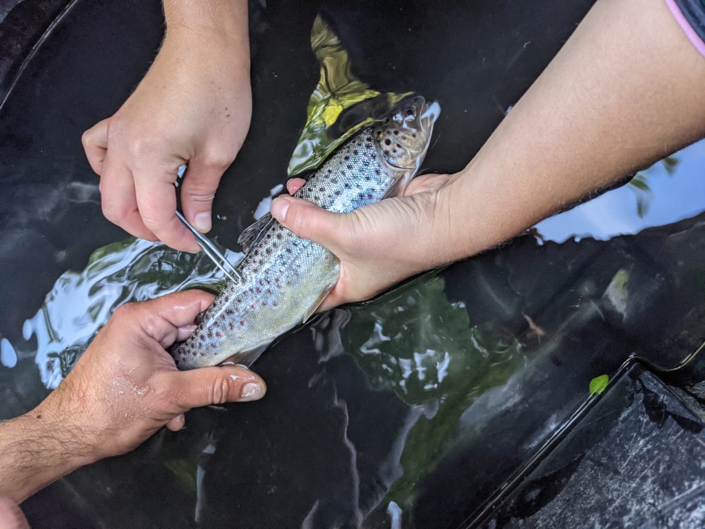 Le suivi télémétrique consiste à marquer des individus (ici 28 truites fario, 4 truites de mer et 6 ombres communs) à l’aide d’émetteurs radio à antenne interne et de transpondeurs, afin de pouvoir suivre leur déplacements tout au long d’une période donnée.